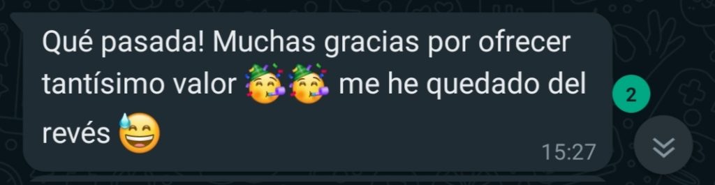 En 15 días te da tiempo a ver: 2 módulos de los 6 del temario y asistir a una mentoría grupal en directo. Puedes interactuar en el grupo de whatsapp y probar mi soporte. Así puedes comprobar si este programa es lo que necesitas.